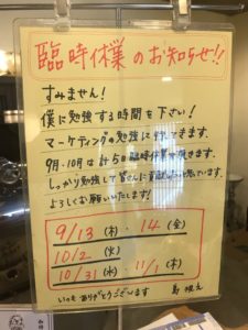 ということで、臨時休業を頂きますのでご迷惑をおかけしますが、よろしくお願いいたします。