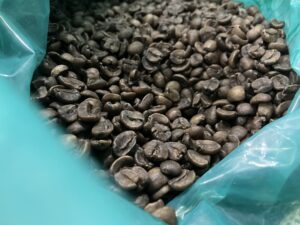 写真は焙煎する前のカフェインゼロコーヒーの生豆です。