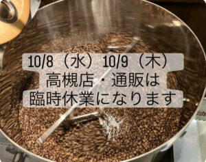10月8日水曜日、10月9日木曜日の両日は高槻店ならびに通販は臨時休業とさせて頂きます。