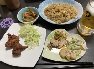 島家のディナーは、高槻は大塚町で枚方大橋のすぐ北にある「中華はなさく」さんにてカミさんがお持ち帰りで、酢豚・エビマヨ・チャーシュー・からあげ・チャーハンを買ってきてくれたものを皆でシェアしました。