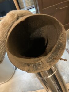 写真は焙煎機から集塵機に繋がるダクトの内部です。