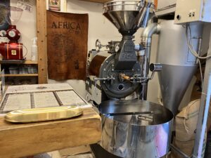 本日は月曜日で、僕のい休みですが岡町本店へ来て、コーヒーシロップ加糖の仕込み焙煎をしています。 昨日