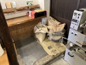 本日は日曜日だけが営業日のお店、豊中は岡町にある岡町本店に来まして、先ほど焙煎が終了し定刻通り10時
